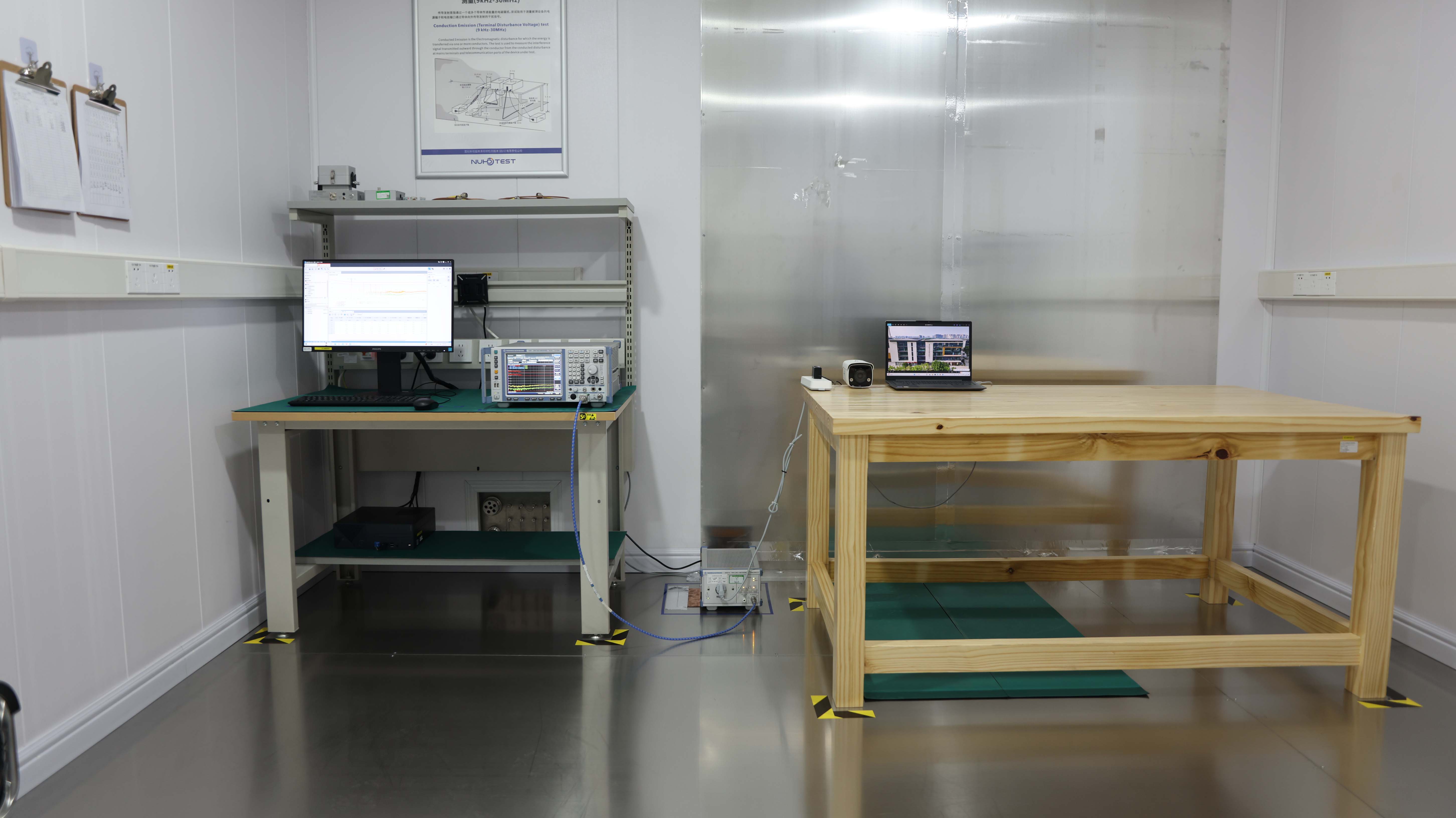 国创新视超高清视频检测技术(四川)有限责任公司拥有电磁兼容实验室和电磁屏蔽室,可进行传导发射/抗扰度、浪涌、脉冲群抗扰度、静电放电、谐波闪烁、工频磁场等检测项目。检测产品类型涵盖但不限于电子电气类、多媒体、信息技术类、超高清视频设备等。